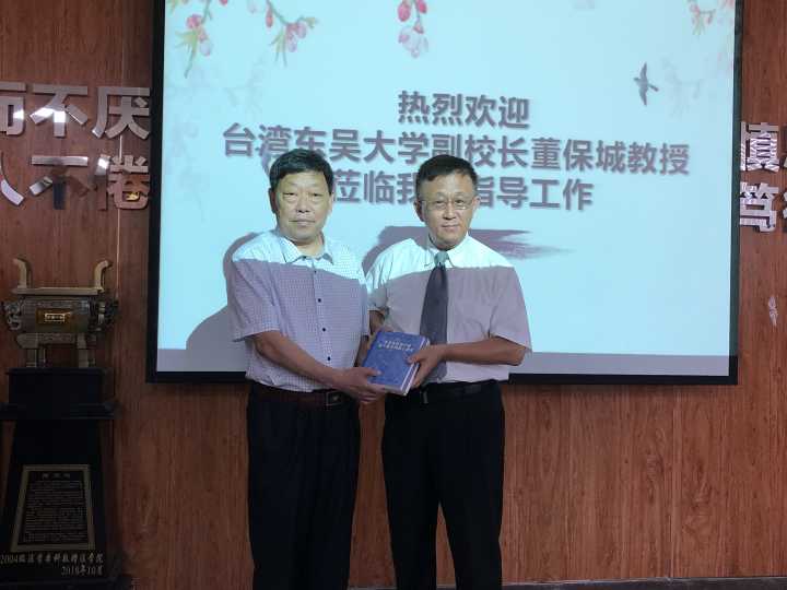 报告结束后,董保城教授向法学院赠送了其最新出版的著作,并表示今后要进一步加强与我校法学院的合作交流。曹明亮对董保城教授的到来表示欢迎,希望我校法学院与台湾东吴大学的合作更上一个新台阶。