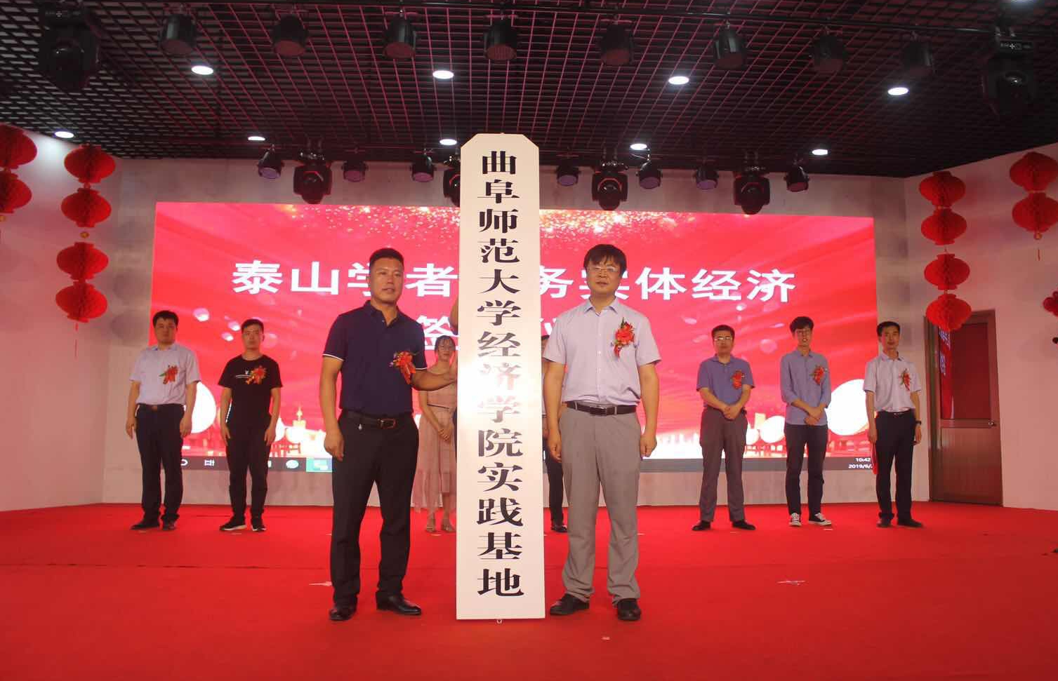 6月26日,经济学院与滨州复圣文化旅游有限公司在沾化区黄升镇举行校企合作协议签约暨泰山学者服务实体经济签约仪式。经济学院院长刘刚,沾化区委常委、组织部长郭俊峰,滨州复圣文化旅游有限公司董事长张立军出席仪式。沾化区委组织部、黄升镇负责人,经济学院部分师生等参加活动。仪式上,刘刚代表学院先后与滨州复圣文化旅游有限公司签约并为大学生实践基地揭牌。