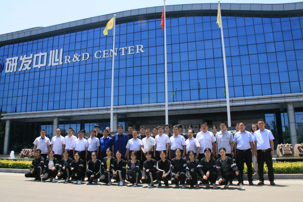 为培养学生勇于探索的创新精神,不断提高动手实践能力,6月11日上午,化学与化工学院2019年工业实习在东宏管业研发中心开课。首批进入实习基地的是材料化学专业30名学生。山东省驻企服务队秦廷军书记一行9人,东宏管业副总裁陈祖平,化学与化工学院党委书记赵琪、党委副书记毛永正、严正权教授、郭丽华副教授、公培伟副教授、孟新博士等出席开课仪式。