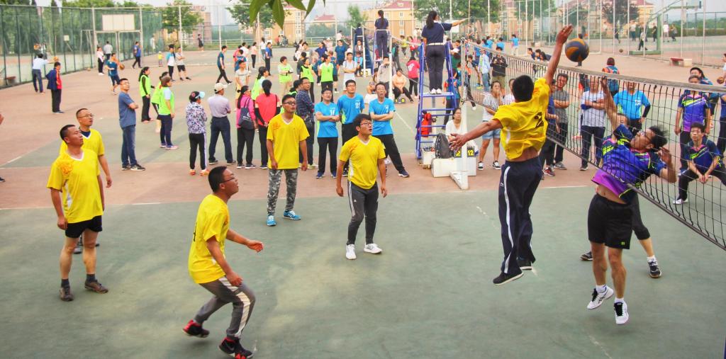 为庆祝新中国成立七十周年,展现我校教职工的运动风采,5月31日,我校2019年教职工排球比赛顺利拉开帷幕。副校长扈庆学宣布比赛正式开始。