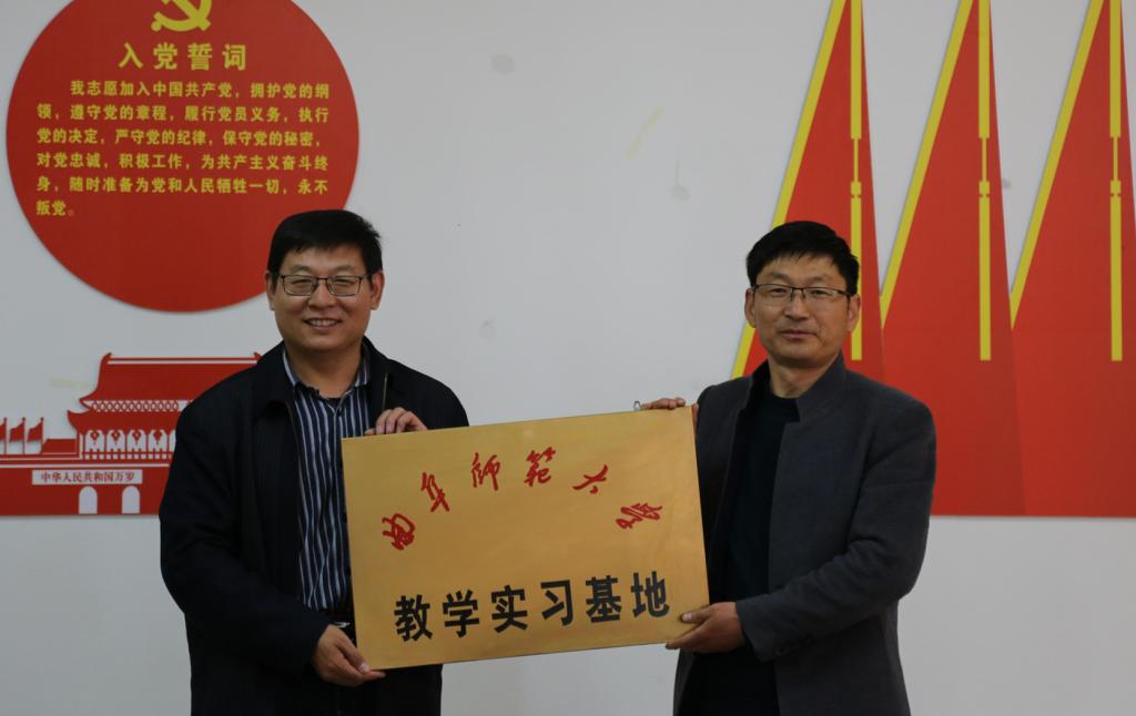 在莒县峤山镇中心初级中学,王作茂一行出席了“米兰官方网站教学实习基地”挂牌仪式。王作茂表示,今后将立足学生发展,立足教师成长,提供更多合作机会,主动开展更深层次的交流,优势互补,为基础教育工作贡献力量。仪式上,王作茂与峤山镇中心初级中学党总支副书记田子明共同签署实习协议,并为“教育实习基地”揭牌。