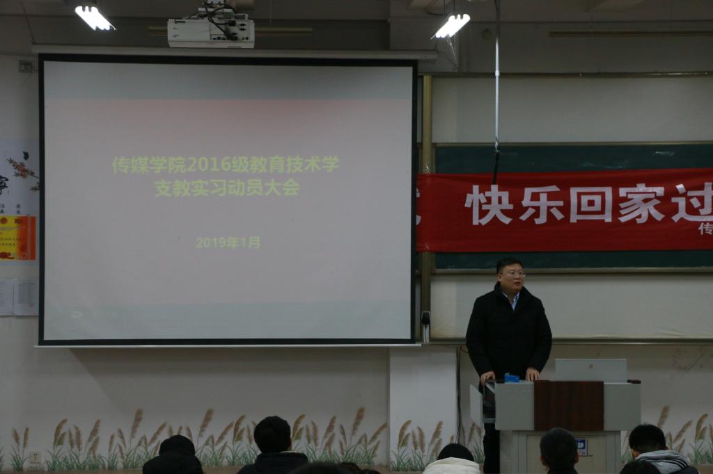 为贯彻落实《米兰官方网站师范生实习支教工作管理办法》相关规定,保障实习工作顺利开展,传媒学院于1月17日召开2016级教育技术学专业实习支教动员大会。传媒学院党委书记李兴保、党委副书记徐正伟、副院长赵可云、团委书记张守荣及全体实习指导老师出席,2016级教育技术学专业全体学生参加大会。