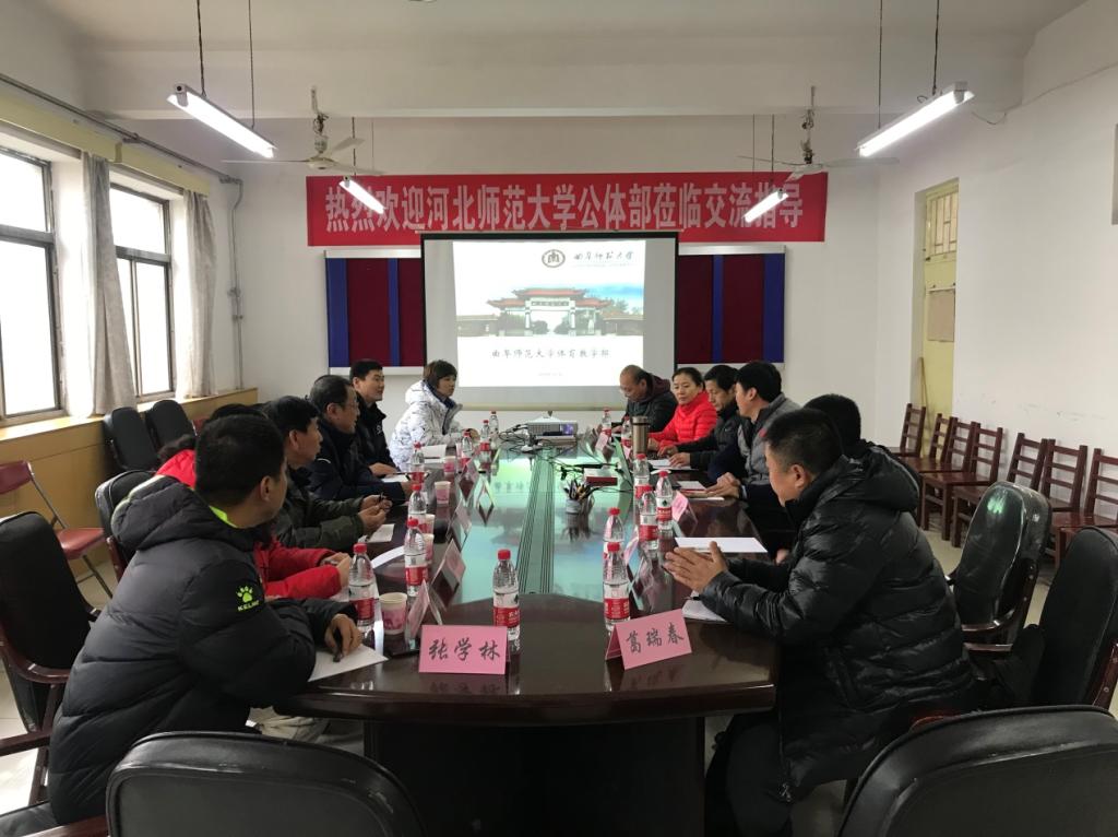 1月7日,河北师范大学公共体育教学部主任张晖一行来我校体育教学部进行考察交流,我校体育教学部副主任李兆进同各教研室主任与张晖一行举行了座谈交流。