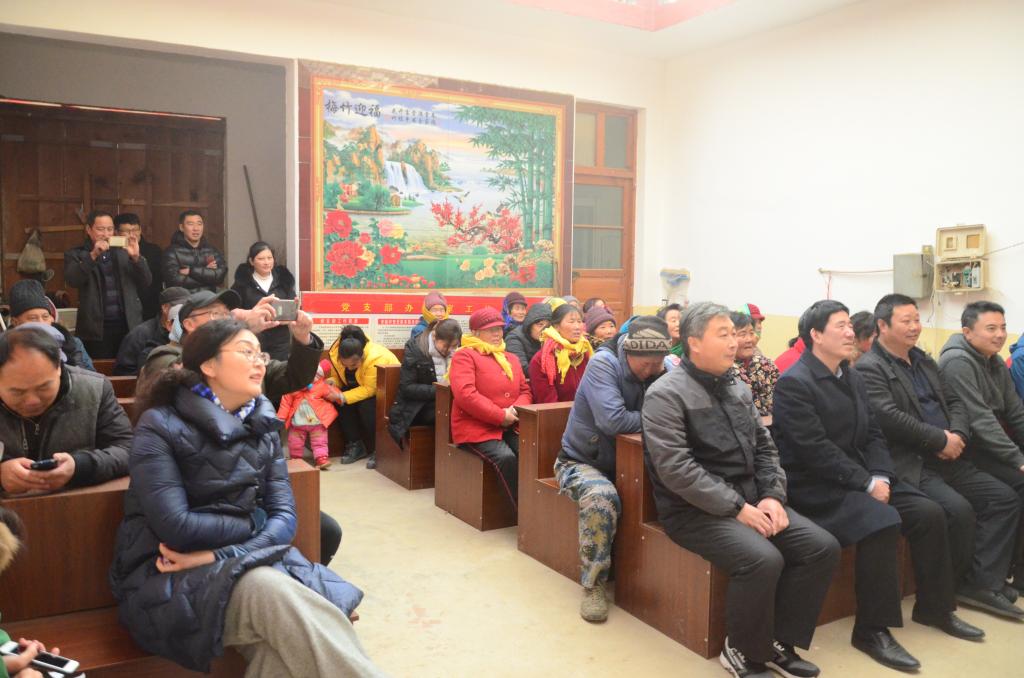 下午,两支部共同开展了“优秀传统文化下乡,促进乡村文明和谐”和“送歌舞送欢笑送春联送祝福”文化宣传活动。学生工作处(武装部)党支部为李家鸡山村村民量身定制了“万善德为本、百行孝为先”专题小课堂,送去了书法学院学生书写的百幅春联,并带去了大学生艺术团表演的精彩节目。寒冷的天气抵挡不住乡亲们的热情,村民接踵而至,纷纷领取春联,认真聆听讲座,观看节目,场面热闹非凡。