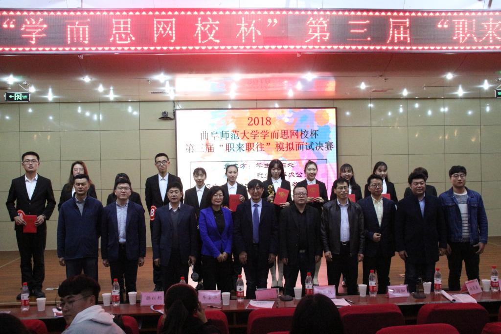 11月23日晚,由我校学生工作处就业指导中心主办的第三届职来职往模拟面试大赛行,日照市人力资源和社会保障局就业促进科科长牟宗华先生山东省五征集团副总经理刘新新先生日百集团党委副书记行政总监刘新权先生日照市心脏病医院行政总监滕以娟女士资深投资人董润知先生等担任大赛评委,我校学生工作处(武装部)相关负责人参加活动