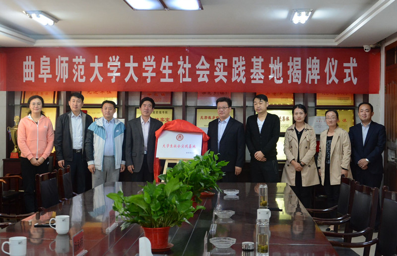 10月13日,我校在曲阜市姚村镇建立大学生社会实践基地。我校宣传部部长纪洪涛、学生工作处处长杨永明、团委书记宋国栋、学生工作处副处长石倩、姚村镇党委书记孟双建、共青团曲阜市委书记邱波、姚村镇副镇长盛兴平、共青团曲阜市委副书记王文函、姚村镇团委书记杨文轩出席了揭牌仪式。