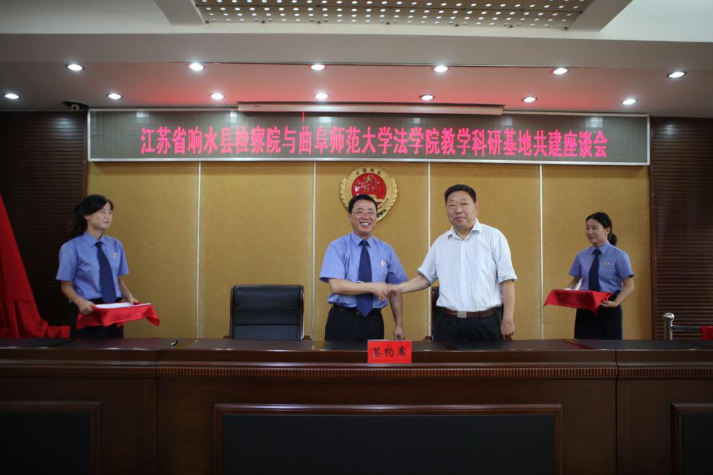 2018年9月5日上午,我校法学院首个省外教学科研基地落户江苏省响水县人民检察院。我校法学院党委书记曹明亮一行,响水县人民检察院检察长陈宏成等出席了揭牌仪式。这是法学院在山东省外建立的第一个实习基地,具有里程碑式的意义。