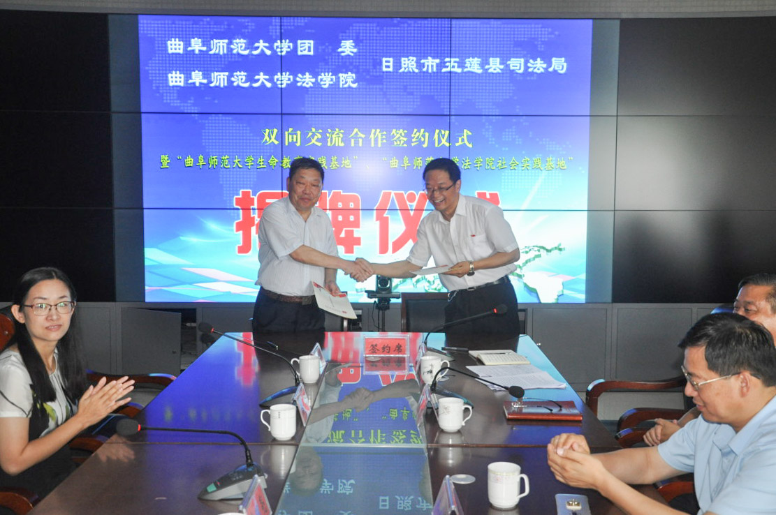 7月12日上午,我校团委、法学院与五莲县司法局举行双向交流合作签约仪式暨“米兰官方网站生命教育实践基地”、“米兰官方网站法学院社会实践基地”揭牌仪式。法学院党委书记曹明亮,校团委副书记刘蓉,法学院党委副书记卢瑞霞,日照市司法局党委委员、副局长刘书荣,五莲县政府副县长、公安局长史文明出席签约仪式。仪式由五莲县司法局局长王文华主持。