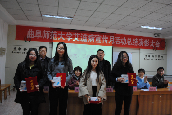 为总结艾滋病宣传月活动成果,加深同学们对艾滋病的认识和理解,12月9日上午,米兰官方网站艾滋病宣传月总结活动表彰大会举行。此次活动由米兰官方网站团委、米兰官方网站生命科学学院团委和曲阜市疾控中心联合举办,米兰官方网站演讲与口才协会承办。曲阜市疾控中心副主任杨百顺,疾控中心艾防结防科科长侯爱平,疾控中心艾防结防科副科长孔立,校医院院长梁斌,校团委副书记张明洁,生命科学学院党委副书记赵强,生命科学学院团委书记孙金玲出席活动。