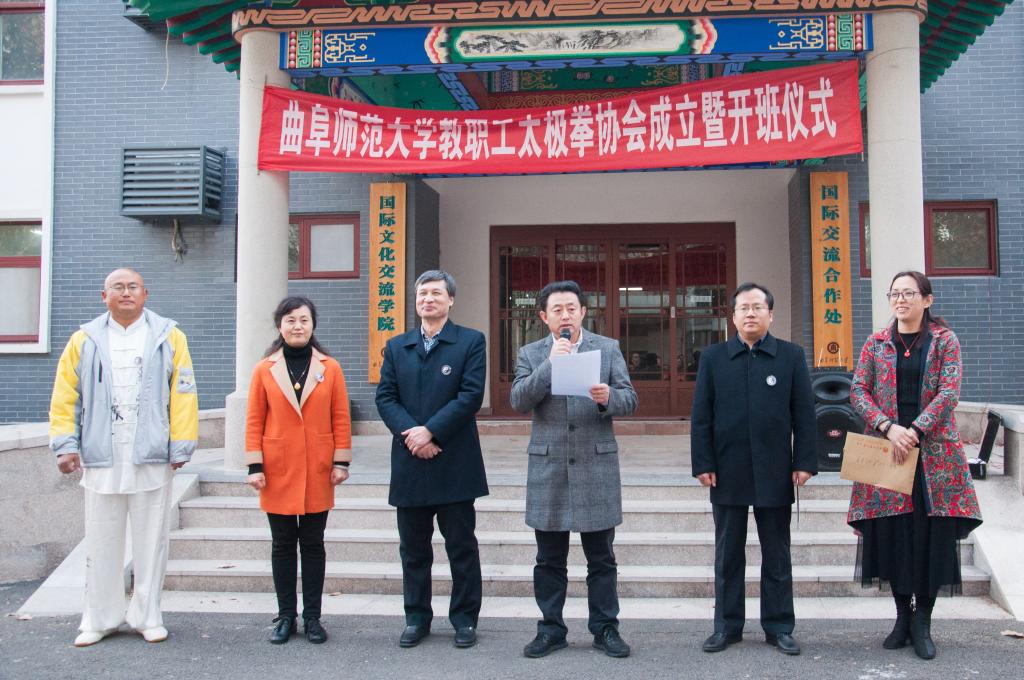 11月22日下午,我校教职工太极拳协会成立暨开班仪式举行,学校党委宣传部、工会负责人出席仪式,协会全体成员参加仪式。