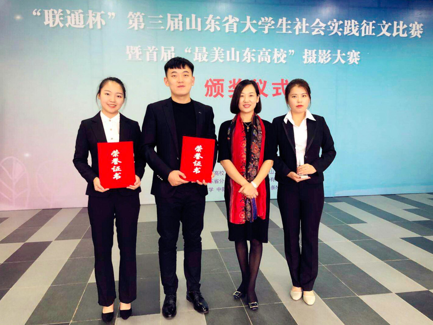 10月15日,第三届山东省大学生社会实践征文大赛颁奖仪式在山东建筑大学举行。我校工学院蒲公英支教团同学在徐璐老师指导下撰写的征文《关爱留守儿童支教调研》,从全省77所高校的191篇征文中脱颖而出,荣获省级三等奖。