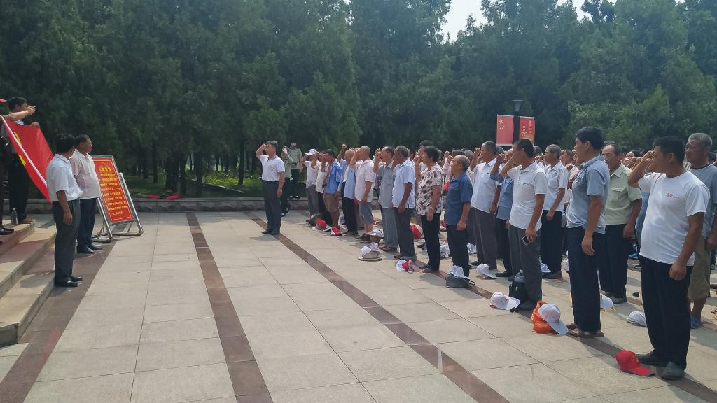 活动中,全体党员不顾炎热酷暑、烈日暴晒,认真观看革命文献实物,仔细聆听烈士英勇事迹,深刻领会革命战争年代人民子弟兵不畏牺牲的革命英雄主义精神和沂蒙人民奋勇支前的无私奉献精神,进一步加深了对马克思主义群众观的认识。在孟良崮战役纪念馆,大家面向党旗举起右手,庄严地重温了入党誓词。