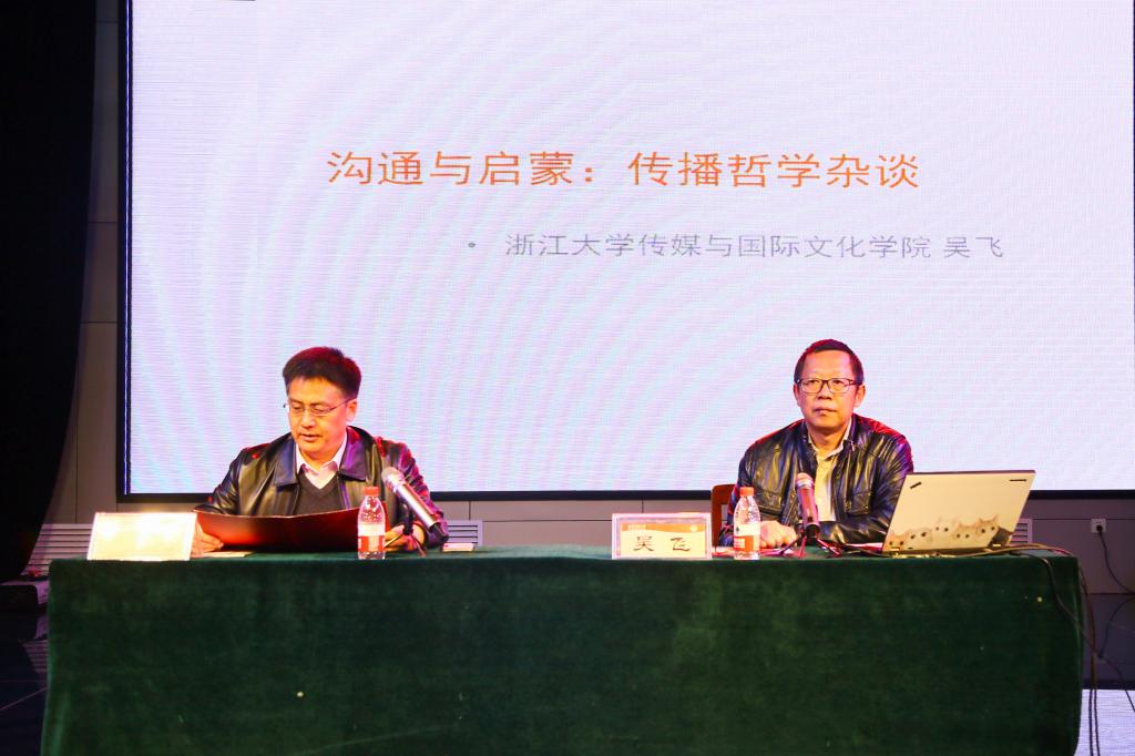4月1日上午,浙江大学传媒与国际文化学院院长、教育部新闻传播学教学指导委员会委员吴飞教授,应邀来我校作题为《沟通与启蒙——传播哲学杂谈》的学术报告。传媒学院师生一起聆听了报告,报告会由传媒学院副院长胡凡刚教授主持。