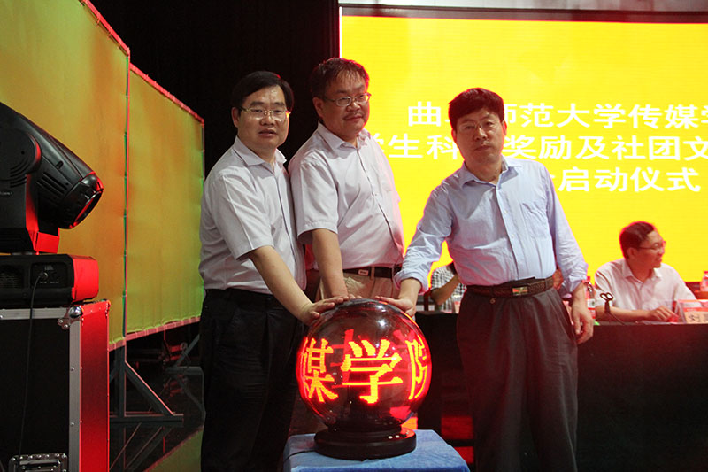 为推动大学生的科技创新,丰富大学生的文体社团活动,6月22日下午,传媒学院举行科研奖励及文体社团活动基金启动仪式。日照校区管委会主任助理、校区管理办公室主任池福安,日照校区机关党委书记、学生工作办公室主任孔令军,济宁昊宇环保科技有限公司董事长王永军,日照民通管业有限公司经理刘冰,山东今朝文化发展有限公司经理王成,山东临朐鲁艺装修工程有限公司经理李新浦,日照市东港区李飞健身俱乐部经理李飞,大众网日照记者站站长李佩强,山东德衡律师事务所日照分所执行主任、我校法律顾问、硕士生导师刘同战,传媒学院党委书记李兴保,院长马秀峰,团委副书记、日照校区学团办公室副主任陈庆国,日照校区学团办公室副主任徐正伟,日照校区学团办公室老师钟振洪,传媒学院副院长胡凡刚,党总支副书记肖龙航,副院长王焕景等出席启动仪式。