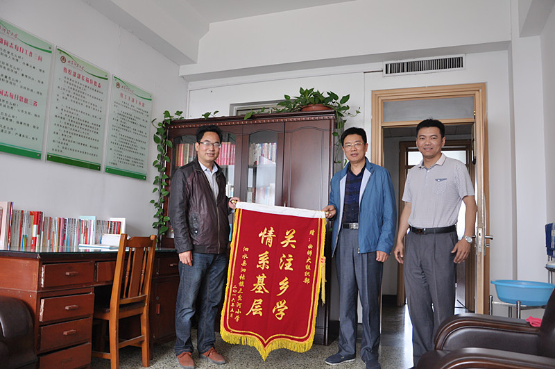 5月11日,我校“第一书记”驻村中心校——泗张镇三岔河村小学向我校赠送了“关注乡学 情系基层”、“关注乡村 捐资助学”的锦旗。