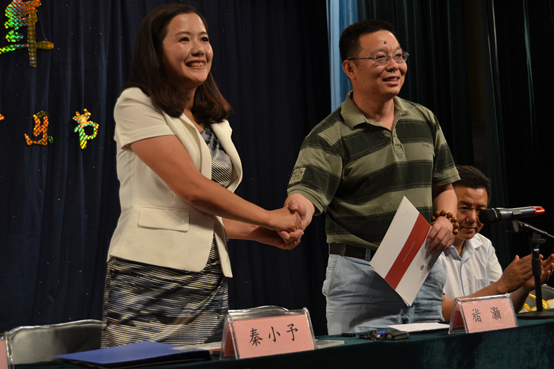 褚灏院长与一步集团秦小予经理共同签约。签约仪式后,出席的仪式领导为在2014年度各类比赛中获得省级二等奖以及2014年度十佳励志学子颁奖。
