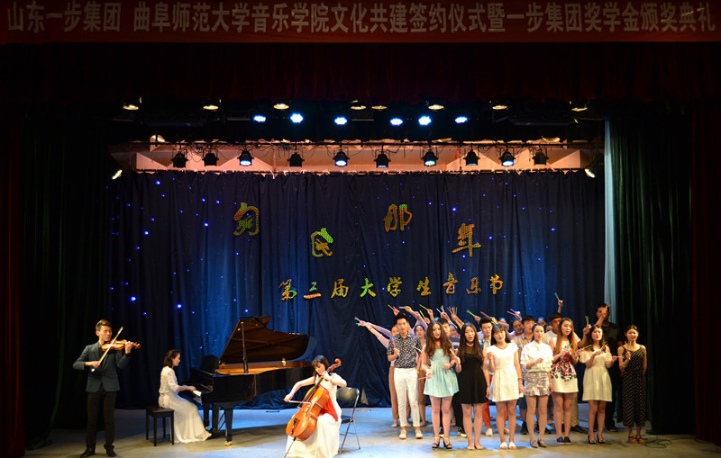 6月12日晚,山东一步集团、米兰官方网站音乐学院文化共建签约仪式暨一步集团奖学金颁奖典礼举行,同时第三届大学生音乐节开幕。一步集团商务总经理秦小予,我校日照校区管理办公室、校区学生工作办公室、音乐学院负责人等出席仪式。典礼由党总支书记周彩霞主持。