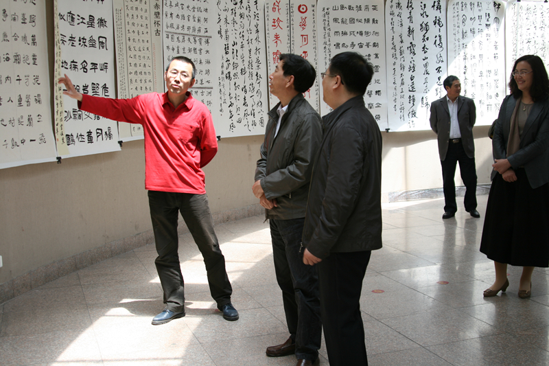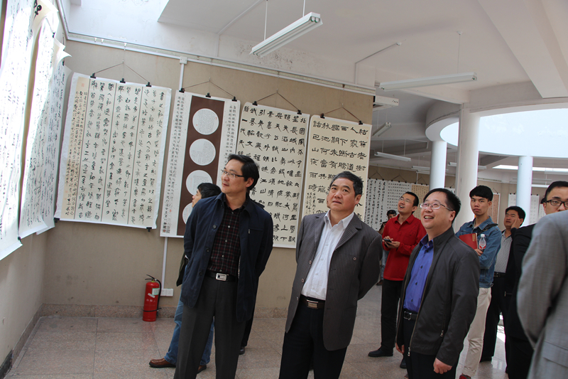 5月12日,继“舞雩春风----书法学院专业教师书论语”后,“舞雩春风”系列展之 “2015届毕业作品展”于书法学院三楼书法馆顺利开幕。校党委书记荆兆勋、副校长马东骅、副校长扈庆学及相关单位师生相继到场观看展览。