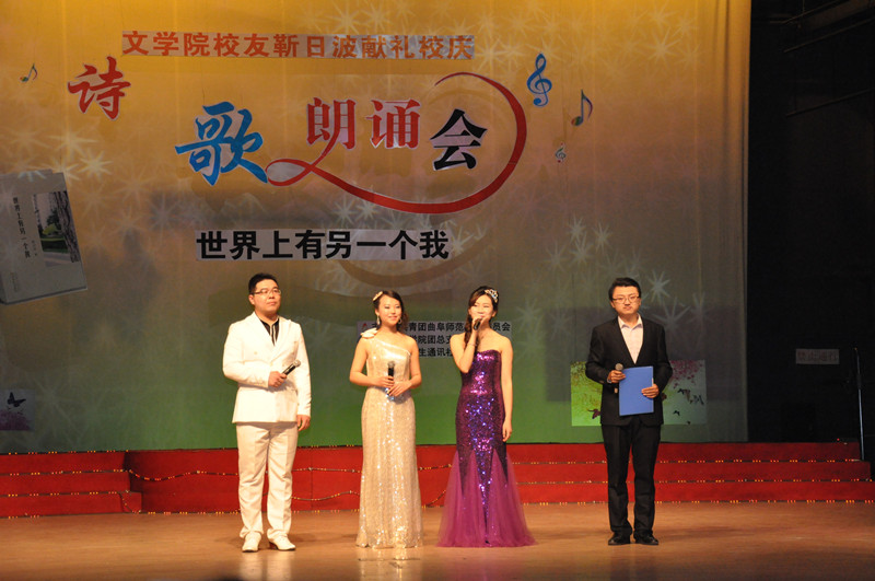 伴着一首《幸福》,朗诵会缓缓拉开帷幕。《我若为鱼》、《致所爱》、《一张童年心愿单》等诗歌,情感真挚,饱含深情;文学院李钧教授朗诵的《致母亲》献礼母亲节,温暖可亲;袁梅老师朗诵的《致逝去的老祖母》像一段老故事,如泣如诉,令听者潸然泪下;03级校友张建春、07级校友李晔、09级校友石文学、10级校友王传军等靳日波的朋友、同学、读者也来到现场,以诗会友,用一种独特的方式将对母校的敬意与爱戴淋漓尽致的表达出来,献礼母校六十周年校庆。伴随着《我青春的河,淌过你的脚畔》这首饱含回忆的诗歌,本场诗歌朗诵会带着对青春的不舍和对母校的眷恋徐徐落下帷幕。