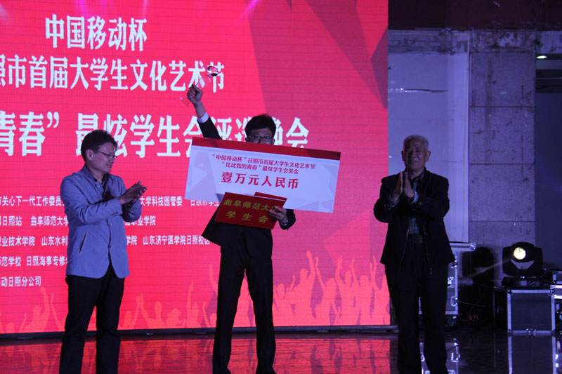 5月9日晚上,由日照市关心下一代工作委员会、共青团日照市委主办的首届大学生文化艺术节“比比我的青春”最炫学生会评选晚会在我校日照校区阳光会场举行,经过7个学校学生会的精彩展示,最终我校日照校区学生会获得了“最炫学生会”的荣誉称号。