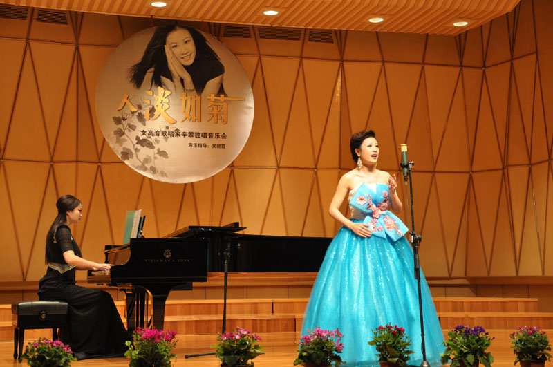 近日,我校音乐学院声乐副教授辛翠应邀赴宁波音乐厅举办个人独唱音乐会。当晚,音乐厅座无虚席,辛翠优美而感人的歌声和对音乐生动准确的表达,引起在场观众的共鸣,赢得真挚而热烈的喝彩。音乐会尾声应观众的要求又返场加演《龙船调》及《多谢了》两首歌曲。