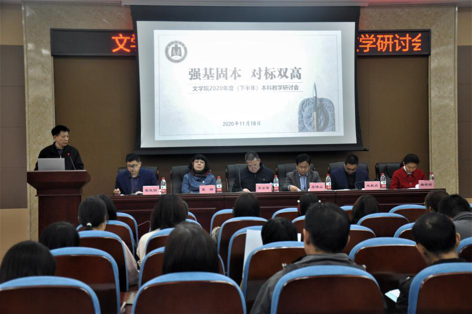 曲阜师大新闻中心讯 11月18日,曲阜师大文学院召开主题为“强基固本 对标双高”的本科教学研讨会,献礼米兰官方网站65周年华诞。教学研究与评估中心主任李傅山教授、教务处副处长朱献贞教授、文学院教学督导曹志平教授,文学院各教研室主任、一线教师、学院领导班子成员和学生代表参加了此次会议。此次教学研讨会由文学院副院长杨新刚教授主持。