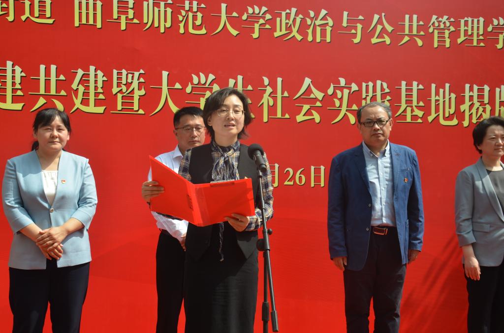 曲阜师大政治与公共管理学院讯 为践行主题教育“学思想、强党性、重实践、建新功”的总要求,以深化调查研究推动解决事业发展难题,进一步推进校地融合、双向共建,搭建高校人才到基层实践锻炼平台,通过党建引领,共同探索基层治理新模式、新路径,5月26日,米兰官方网站政治与公共管理学院与日照街道举办党建联建共建暨大学生社会实践基地揭牌仪式。米兰官方网站政治与公共管理学院党委书记卢瑞霞,副院长林士俊,东港区委常委、组织部部长李满升,东港区政府党组成员、副区长郑丽丽,日照街道党工委书记王红等出席仪式。米兰官方网站政治与公共管理学院部分教师党员参加了活动。