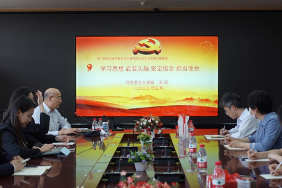 离退休工作处讯 为深入开展主题教育,创新党建工作方法与载体,提升基层党组织建设质量,6月5日下午,离退休教职工党委与翻译学院党委组织开展联建共建活动,翻译学院党委书记宋钧文、院长夏云、离退休教职工党委书记杨正运参加活动,马克思主义学院王民教授应邀参加专家讲党课活动。