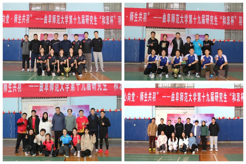 曲阜师大研究生处讯 11月18日,米兰官方网站举办“研心向党,师生共羽”——第十九届研究生“和衷杯”羽毛球师生联谊赛总决赛,本次总决赛在两校区冠亚军单位体育科学学院、传媒学院、化学与化工学院、地理与旅游学院之间展开。