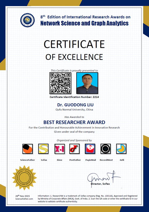 ScienceFather是国际知名的科学、工程、同行评审出版商和会议组织者Scifax旗下的一个学术团体,“Best Researcher Award”(最佳研究者奖)是基于科研工作者最新出版的论文质量、新颖性以及科研表现而颁发的奖项,主要对获奖者科研成果的影响力、独特性、创新性及其未来发展的可能性进行评价,主要授予在创新研究方面做出重要贡献和杰出成就的学者。2020-2023年获得该项奖项的学者来自中国科学院、浙江大学、上海交通大学、兰州大学、四川大学等高校院所。
