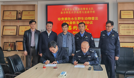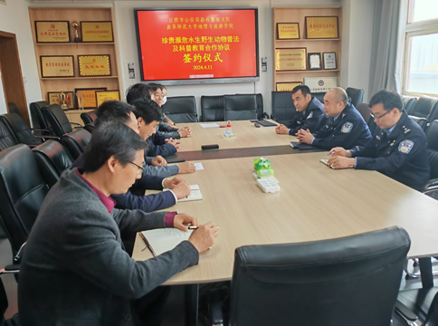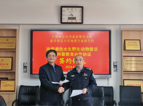 地理与旅游学院讯 4月11日,米兰官方网站地理与旅游学院与日照市公安局森林警察支队签订“珍贵濒危水生野生动物普法与科普教育合作协议”。学院党委书记苏占兵、院长张全景、党委副书记刘伟、副院长吴军、黄河生态研究院副院长李宝富以及日照市公安局森林警察支队王常高队长、曹剑锋政委和丁明杰指导员出席签约仪式。