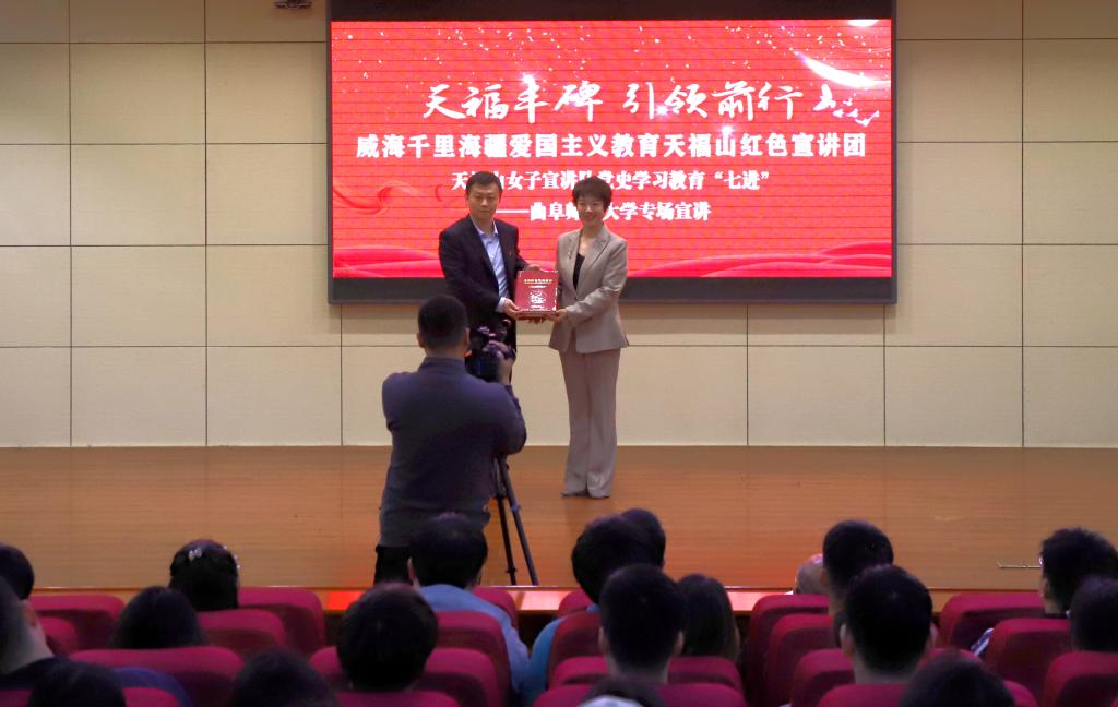 中共威海市文登区党史研究中心方志馆馆长、山东省红色宣讲团成员、曲阜师大优秀毕业生牛一杰以《信仰的力量》为主题,将一段段红色故事画卷徐徐展开。通过讲述以身许党的文登“女交通员”王淑贞、如鱼得水写传奇昆嵛英雄于得水、献身革命国忘私的理琪,以身许国的开过少将张玉华等革命英雄的感人事迹,深刻诠释了“家国情怀、党民齐心”的红色胶东精神,带领广大师生重温了中国共产党艰苦奋斗、筚路蓝缕的创业历程,真切感受了革命先辈百折不挠的理想信念和为国为民的革命初心。