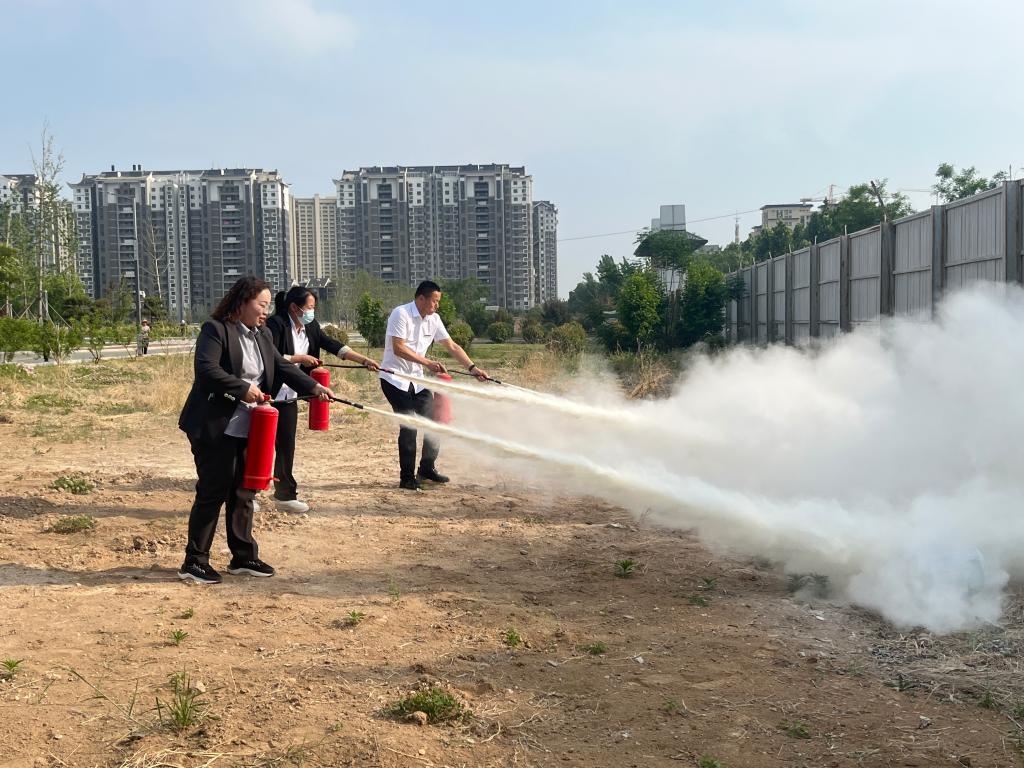王磊首先从实用消防法律法规、消防安全隐患识别与消除、消防安全技能实操、消防安全培训组织与实施等四方面开展了消防技能培训与知识考核。模拟现场实操环节,所有人员在消防员的专业指导下现场操作演练了消防栓及灭火器的使用,做到了掌握要领、操作规范,达到了预期效果。