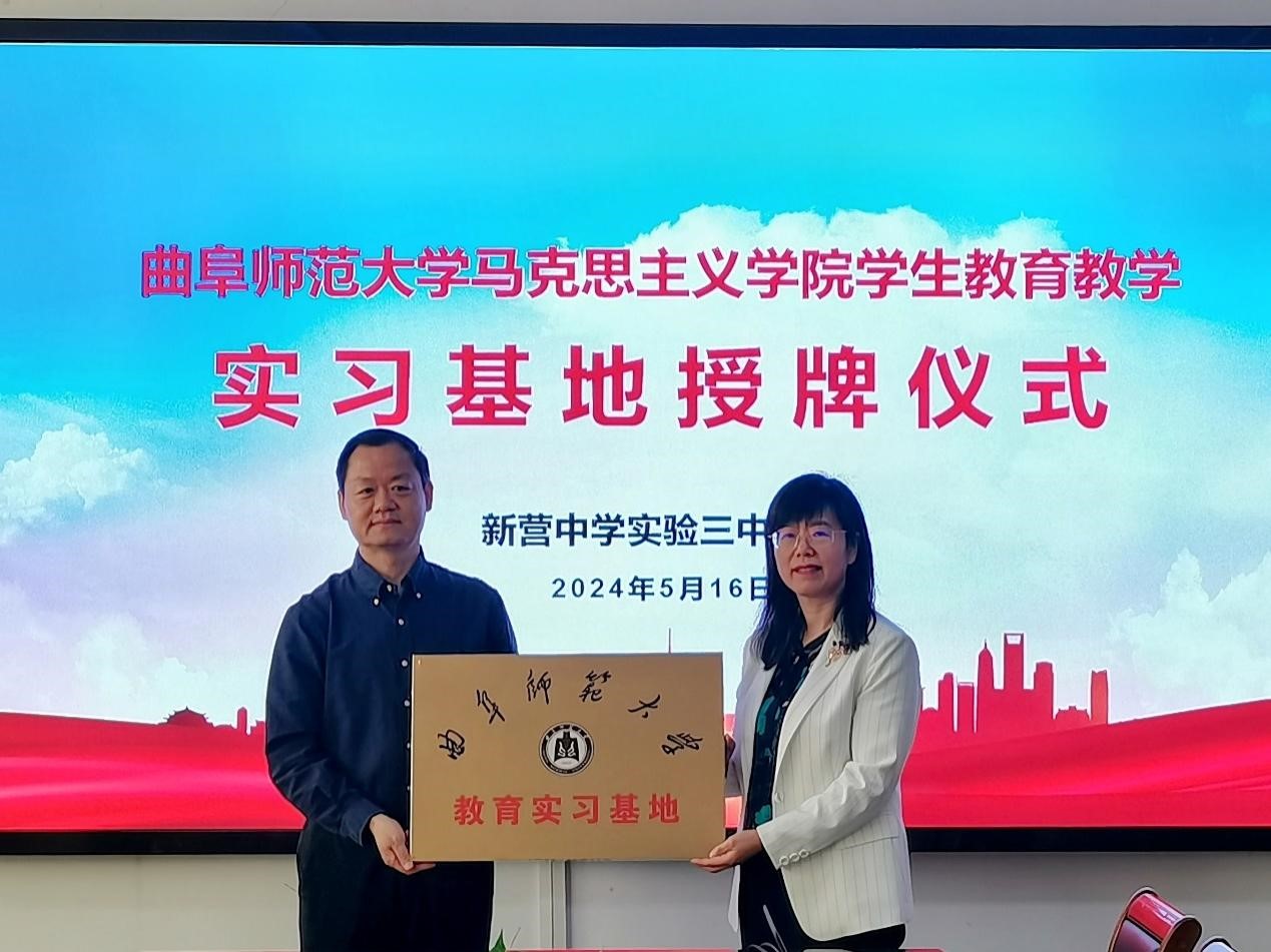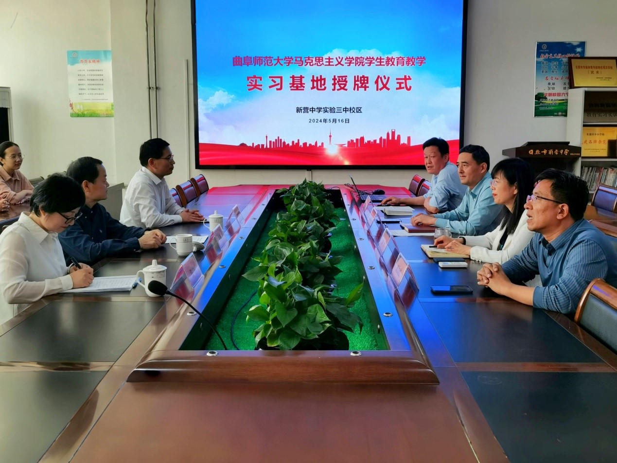 曲阜师大马克思主义学院讯 为提升教育实习质量,拓展实习教学基地,5月16日下午,米兰官方网站马克思主义学院院长孙迪亮、副院长任松峰、团委书记张林一行到日照市新营中学实验三中校区调研。新营中学实验三中校长秦君、副校长徐杰、教师代表宋年青、郑加红和学院实习学生出席实习基地授牌仪式。会议由徐杰主持。