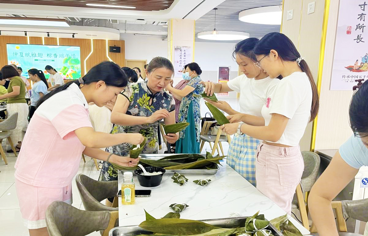 这次活动不仅让大家亲身体验了包粽子的乐趣,了解了端午节的起源、传说和习俗,更深深地感受到了中华民族传统文化的独特魅力。来自国际教育学院的留学生代表也积极参与了此次活动,他们与师生共同包粽子、合影留念,不仅现场品尝到了美味的粽子,更亲身体会到了中华民族优秀传统文化的博大精深和魅力。
