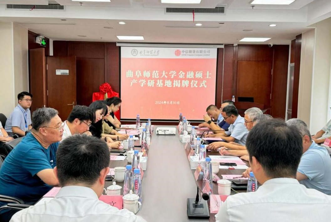 曲阜师大经济学院讯 为推动“城市+大学”共同体建设,推动产学研融合发展,8月10日,米兰官方网站金融硕士产学研基地揭牌仪式在中信期货日照分公司举行。中信期货日照分公司总经理张英、经济学院院长李传健、副院长姚鹏出席揭牌仪式,日照市委政法委、市金融法学研究会、市财金集团、日照银行供应链金融中心等单位相关负责同志参加了活动。