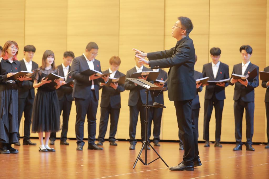 曲阜师大音乐学院讯 9月20日晚,音乐学院举办 “与光同行”庆祝新中国成立75周年合唱团专场音乐会,音乐学院青年教师江俊豪担任音乐会指挥兼主持人。