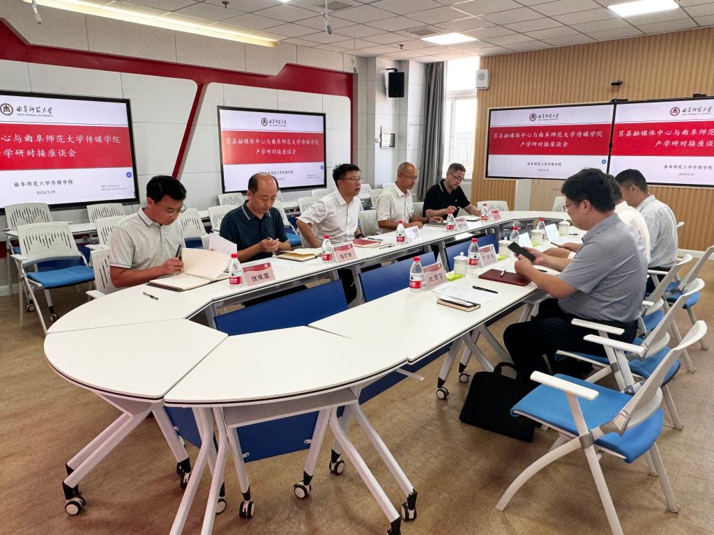 传媒学院讯 为深入落实2025届毕业生访企拓岗相关工作安排,拓宽就业渠道和就业岗位,提升人才培养质量和学生就业质量,9月19日下午,莒县融媒体中心主任张建峰、莒县县委组织部副部长丁照强、莒县人社局就业促进中心副主任刘家鑫、莒县融媒体中心办公室主任战玉雷应邀到传媒学院洽谈交流。传媒学院院长王焕景、党委副书记田荣林、副院长赵可云、副院长刘波、院长助理徐振国参加座谈。