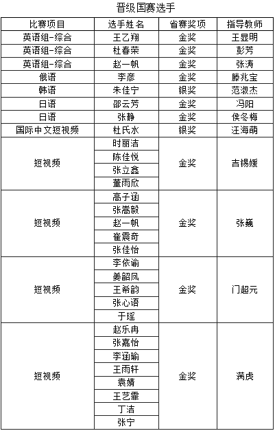 公共外语教学部讯 11月2日至3日,外研社•国才杯“理解当代中国”全国大学生外语能力大赛山东省省赛圆满结束。在专业教师的精心指导下,曲园学子表现卓越,成绩斐然,28 位同学和 12个团队成功获得省赛各组别金、银、铜等奖项;8 位同学和4个团队分别晋级国赛,获奖和晋级国赛人数创历史新高。