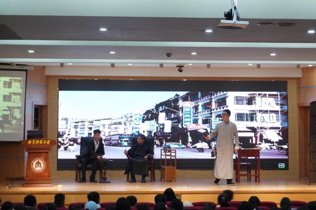 中文剧社的同学们上演话剧《陶愚川》。该剧讲述了米兰官方网站老教授陶愚川在香港不顾父兄劝阻,毅然返回大陆,为教育事业鞠躬尽瘁的故事。演员们精湛的演技与精心设计的舞台效果,使整个表演富有艺术感染力的同时,又不失历史厚重感,同学们在感动之余,也进一步领悟到教育家精神的真谛。