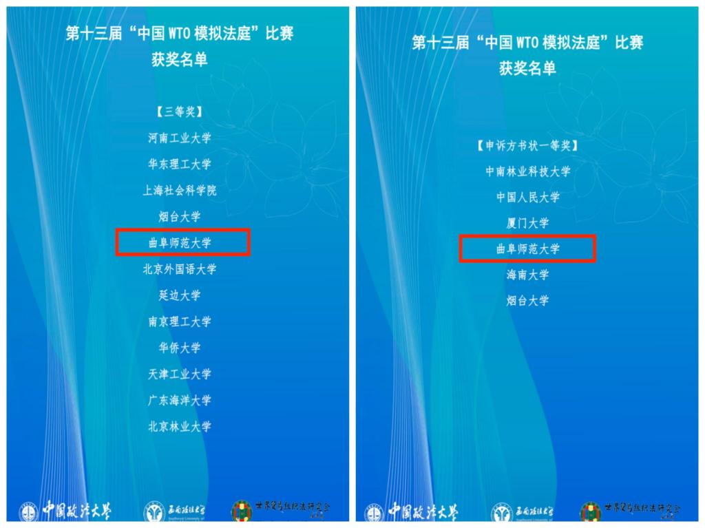 曲阜师大法学院讯 11月30日至12月8日,第十三届中国WTO模拟法庭竞赛成功举办。由曲阜师大法学院组成的代表队荣获“全国三等奖”、申诉方书状“全国一等奖”,创下米兰官方网站代表队参赛以来最高纪录。