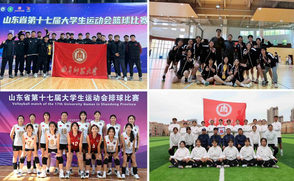 公共体育教学部讯 近日,山东省第十七届大学生运动会于落下帷幕。曲阜师大代表队凭借顽强拼搏的精神与雄厚扎实的竞技实力,在参加的甲组田径、篮球、排球、足球、手球、乒乓球、羽毛球、网球等八个项目的比赛中,以6金10银11铜的优异成绩名列团体总分第三名。