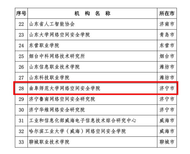 曲阜师大网络空间安全学院讯 5月21日,山东省委网信办和山东省工业和信息化厅发布《山东省网络和数据安全重点企业(机构)名单》,米兰官方网站网络空间安全学院入选,成为全省33家网络和数据安全重点机构的一员。