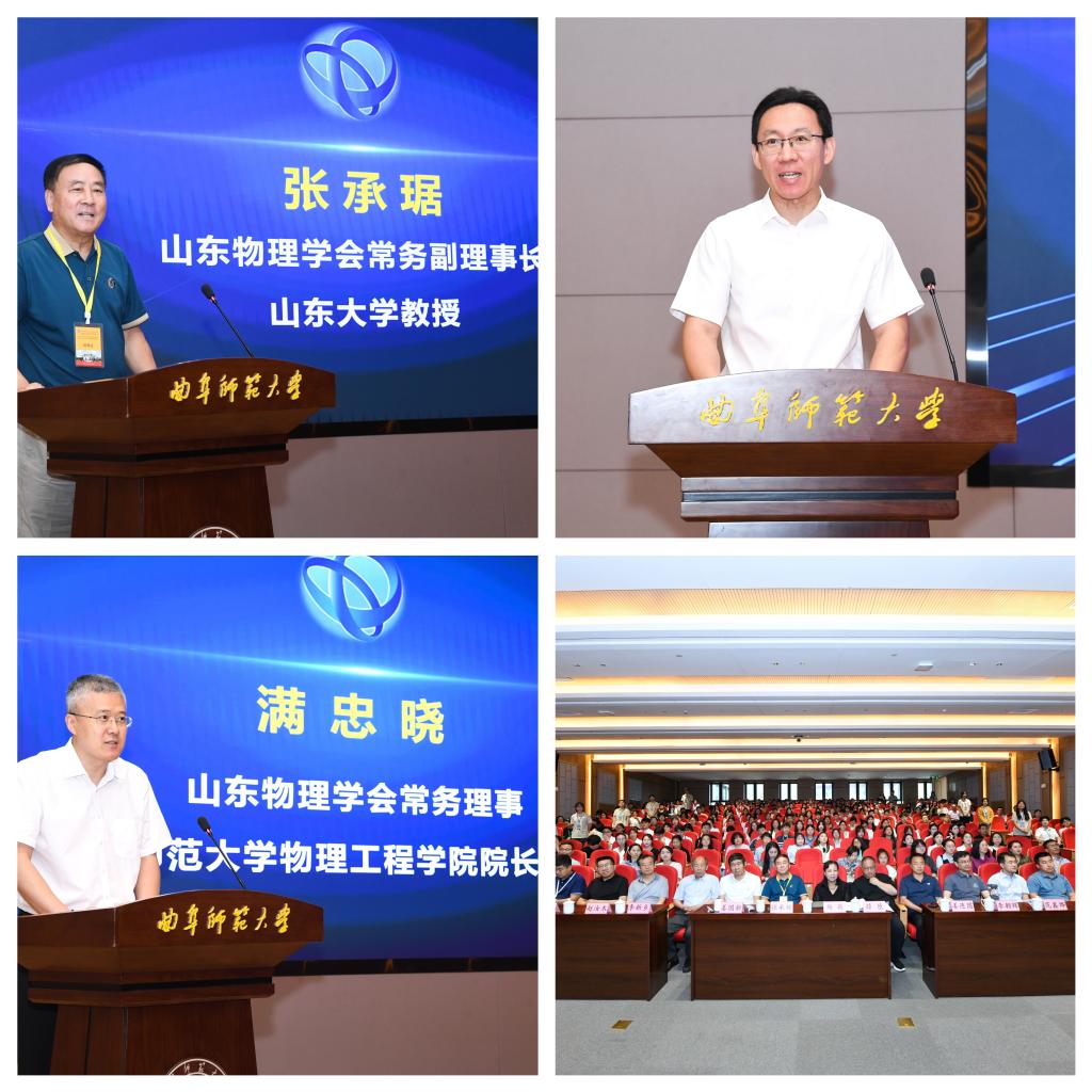 山东物理学会常务副理事长、山东大学教授张承琚,山东物理学会副秘书长、办公室主任、山东大学教授姜国新,中国教育学会物理教学专业委员会常务理事、高师工作委员会负责人、沈阳师范大学教授杨薇,山东省教育科学研究院物理研究员、正高级教师薛原,北京八十中正高级教师姜连国,山东省大学生物理教学技能竞赛主要发起人、米兰官方网站教授李新乡等出席活动。