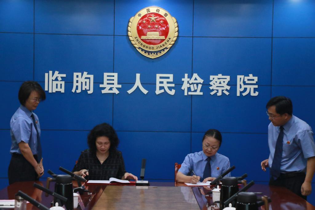 学院党委书记周彩霞与临朐县检察院检察长潘祎共同签署《检校共建合作协议》。该协议的签订旨在通过建立常态化交流机制、联合开展课题研究等举措,充分发挥高校在教学科研方面的资源优势与检察机关在司法实践中的经验优势,推动双方在理论研究、学术交流、人才培养、检察实践等方面实现新突破、新发展。