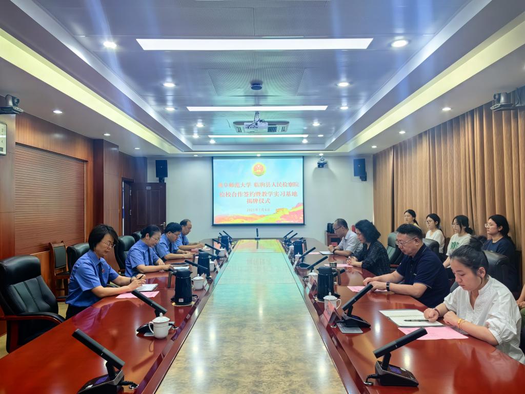 曲阜师大法学院讯  为深化检校协同育人,促进法学理论与司法实践融合,实现检校高质量发展,7月4日,法学院与临朐县人民检察院举行合作协议签订暨教学实习基地揭牌仪式。