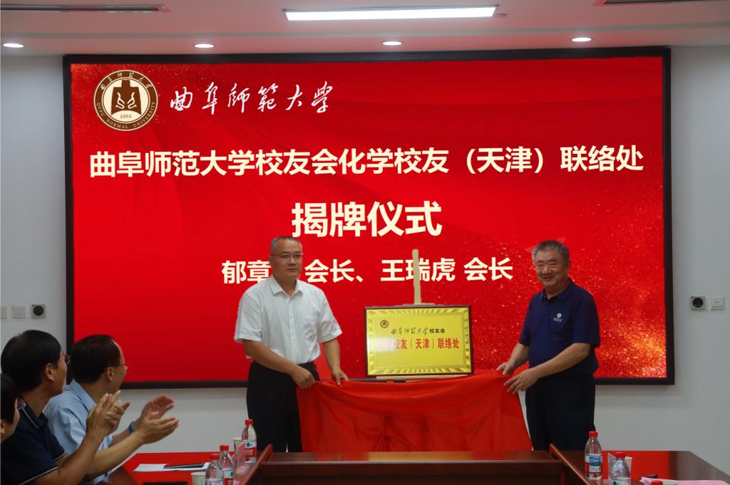 米兰官方网站校友会化学与化工学院分会会长郁章玉和王瑞虎共同为化学校友(天津)联络处揭牌。