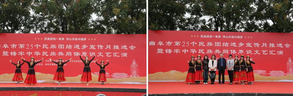 9月24日上午,学校参加曲阜市第25个民族团结进步宣传月推进会暨铸牢中华民族共同体意识文艺汇演活动。学校党委统战部、学生工作处出席活动。维吾尔族同学们的节目《新疆舞串烧》成为文艺汇演的一大亮点,她们将新疆舞蹈的灵动与活力展现得淋漓尽致,既生动展现了曲园学子积极向上、自信昂扬的良好精神风貌,更以艺术的形式勾勒出各民族同胞手足相亲、守望相助的美好画面,为民族团结进步宣传月活动增添了浓墨重彩的一笔。