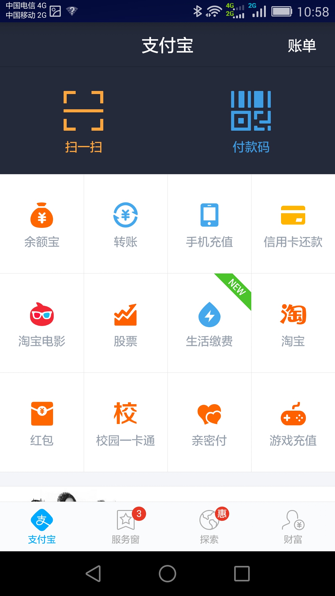 1、手机安装支付宝钱包后,打开“支付宝钱包”手机app,选择“校园一卡通”;