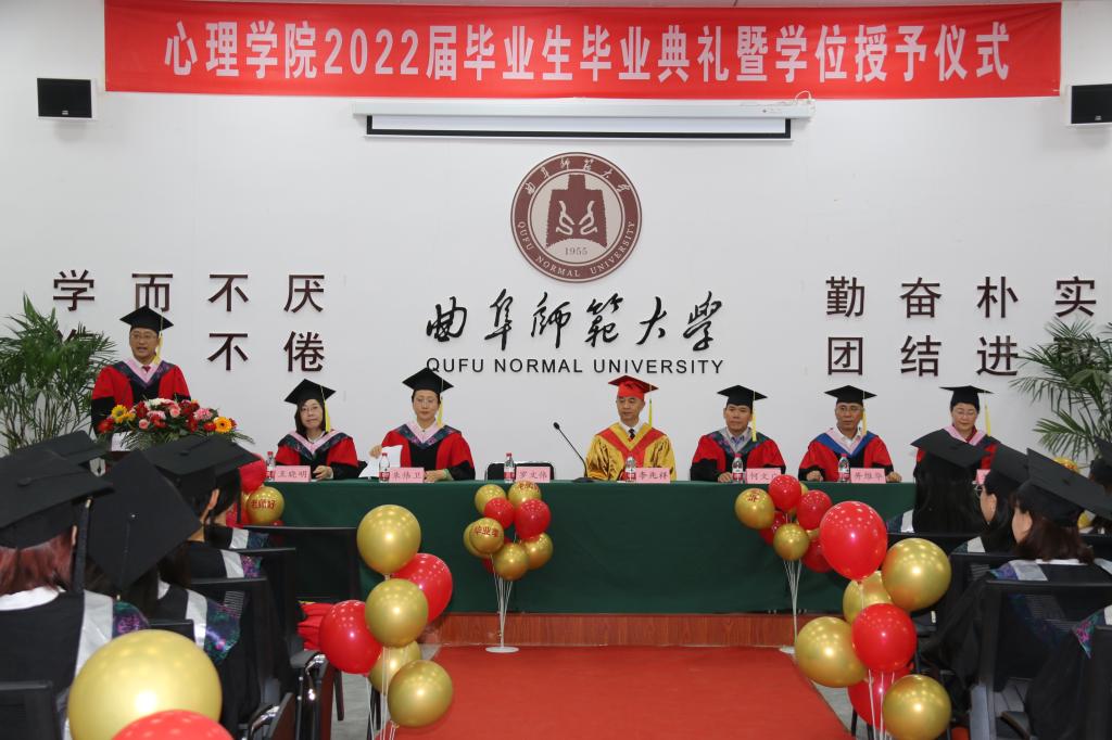 曲阜师大新闻中心讯(通讯员:贺现网) 赓续华章,再响曲园骊歌;六月芳华,扬帆再启征程。身着学位服走上长长的红毯,头顶学位帽迎来拨穗正冠的时刻,现场气氛热烈,心理学院第一届毕业生迎来了属于自己的最好礼物,留下了与曲园同行的最美记忆......6月21日上午,心理学院举行2022届毕业生毕业典礼暨学位授予仪式。米兰官方网站党委常委、副校长李兆祥为毕业生代表拨穗正冠、颁授学位证书、赠送毕业礼物。101名本科生、42名硕士研究生、部分家长、教师代表、在校生代表等通过线上线下的方式欢聚于此,共同见证这一收获时刻。典礼仪式由心理学院党委书记罗文伟主持。